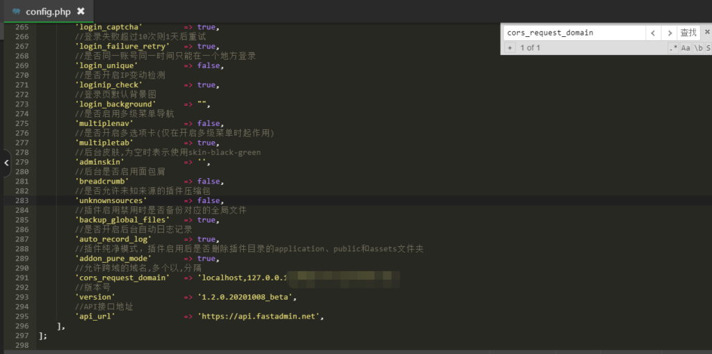 新版FASTADMIN跨域问题 发布者 admin发表于 2021-01-26 用的最新版本Fa,能很方便的解决浏览器跨域问题找到application/config.phpfastadmin的配置cors_request_domain加入你的域名